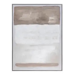 Transform any room with this elegant 36x48 inch abstract painting on canvas. With warm brown tones, bold brushstrokes, and a sophisticated silver gallery frame, it's the perfect addition to any interior decor style. Let your imagination interpret the mysterious and modern feel of this stunning artwork.