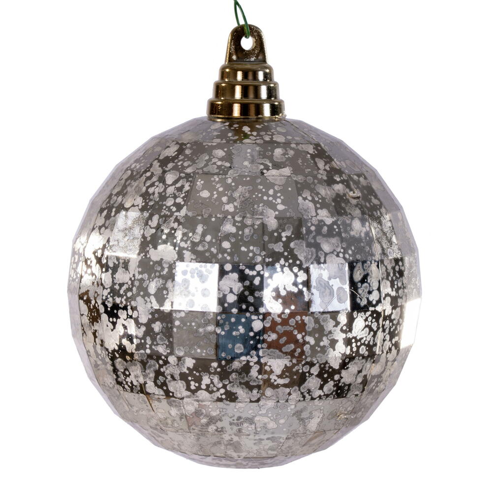 This 4.75" Champagne Mirror Mercury Ornament is shatterproof and showcases an antique mercury finish that mimics the look of glass. It includes a ring cap secured with floral wire, allowing for effortless hanging.