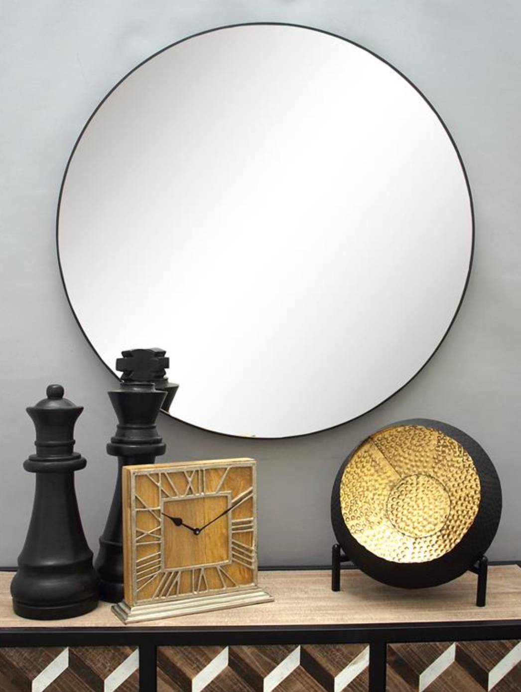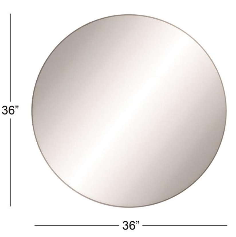 Round wall mirror measures 36"D x 1.5"W and weighs 21 lbs