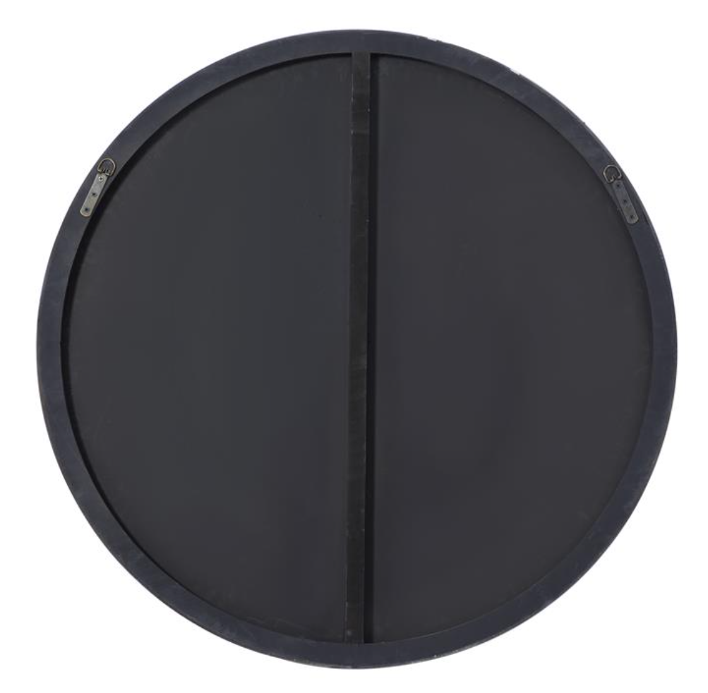 Constructed with a modern aesthetic to achieve an elegant appearance, the black frame of this mirror is fashioned from MDF wood. Its circular shape is coated in a black finish, with a slim frame that creates a minimalist effect, making it suitable for any color scheme or motif.