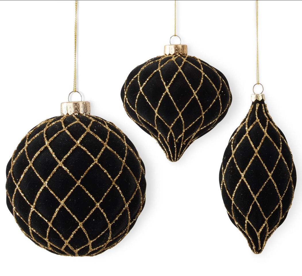 Assorted Black & Gold Velvet Ornaments (3 Styles)