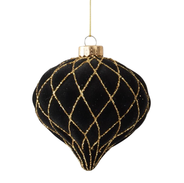 Elevate your holiday décor with this set of Assorted Black & Gold Velvet Ornaments, featuring three distinct styles. Crafted from luxurious velvet, these ornaments add depth and a sophisticated shimmer to your tree. The rich black and gold hues provide a timeless, elegant contrast that complements a variety of decorating themes. Perfectly sized and designed for effortless hanging, they bring an expert touch of refinement to your festive ambiance.