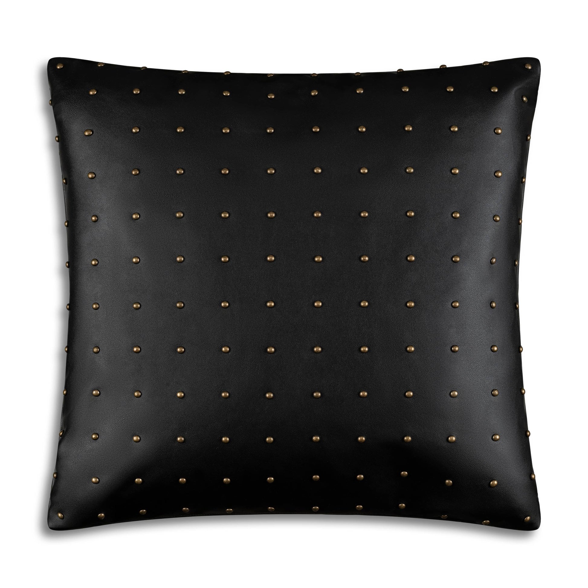 Introducing the alluring Riley Studded Leather Pillow, a luxurious embodiment of modern glam for your home decor. Crafted with the finest faux leather in a deep, enigmatic black hue, this exquisite pillow adds a touch of opulence to any space. Versatile and striking, this pillow effortlessly complements both minimalist and extravagant interiors, infusing a touch of edgy elegance into your living space. Elevate your decor with the Riley Studded Leather Pillow and embrace the allure of modern glam.