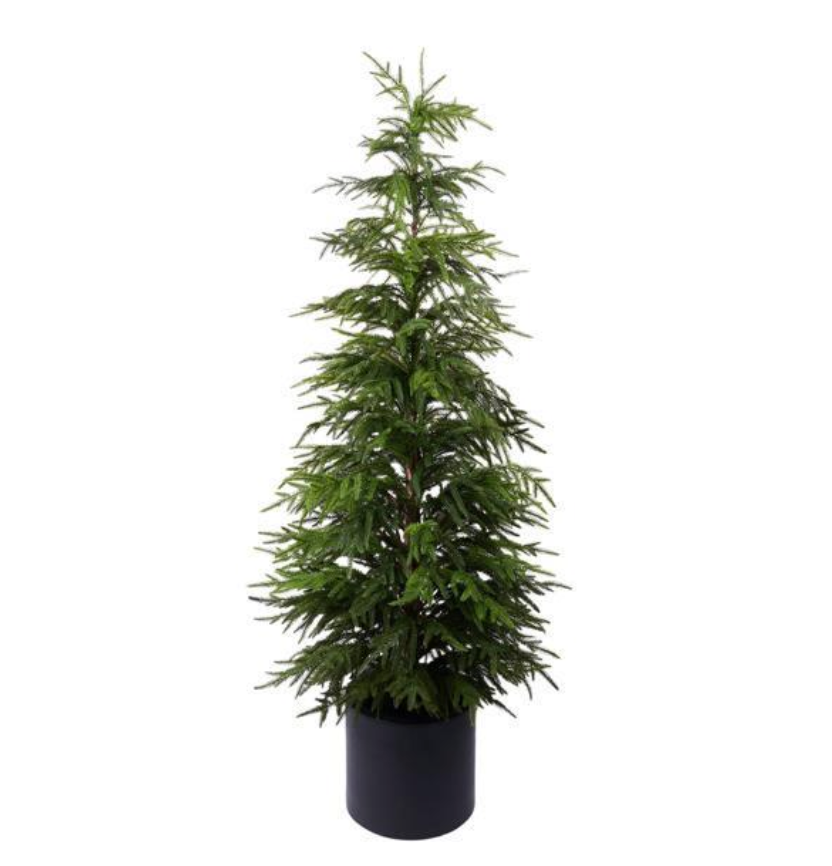 This 59" Real Touch Norfolk Pine Tree in Pot offers a lifelike appearance with its meticulously crafted foliage, adding a natural touch to any indoor setting. Its realistic texture and rich green tones create an inviting atmosphere, while the sturdy pot ensures stability and easy placement. Ideal for enhancing homes or offices, this elegant tree provides maintenance-free greenery year-round.