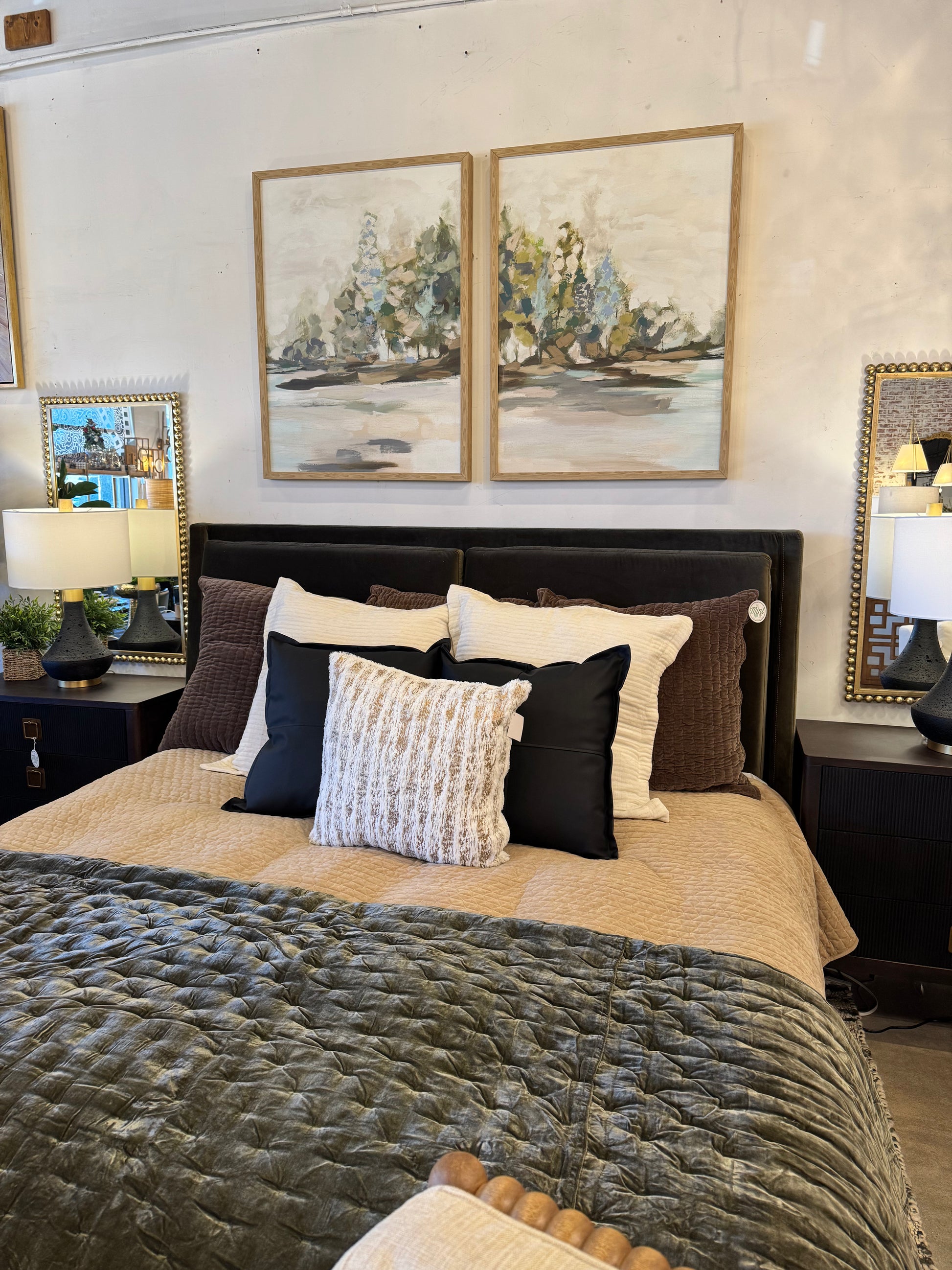This unique Taiga Canvas Art set features a beautiful abstract design, with shades of rich green, gold, and black set against a luxurious gold frame. Bring a touch of natural beauty and color into your home with this eye-catching piece.