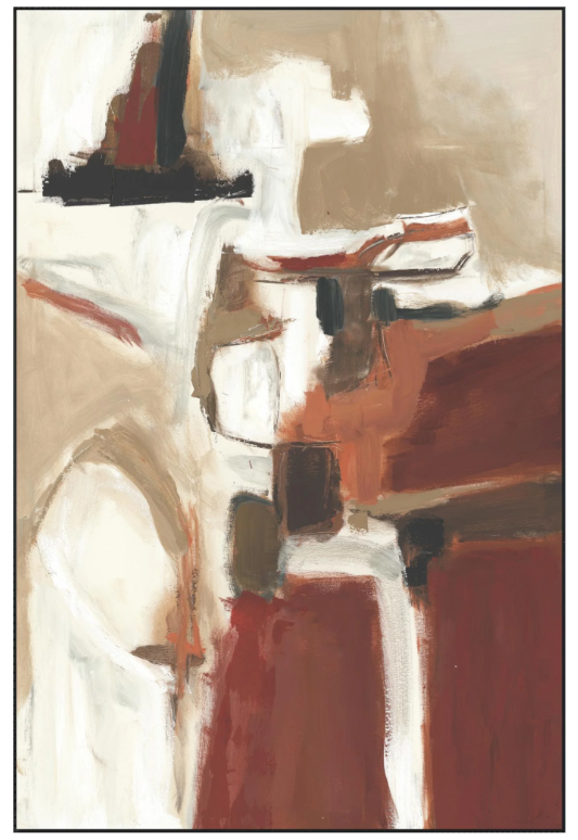 Rich textures and soft gradients define Villa Painting, where abstract layers evoke timeless architectural beauty. Framed in a sleek black floating frame, it adds depth and sophistication.
