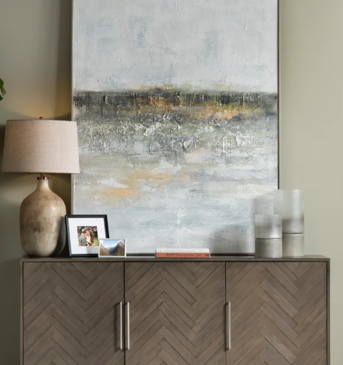 Our Canyon Hand-painted Framed Canvas features varying shades of grey and brown to create the image of a canyon. A thin frame gives this hand-painted canvas image a contemporary style.