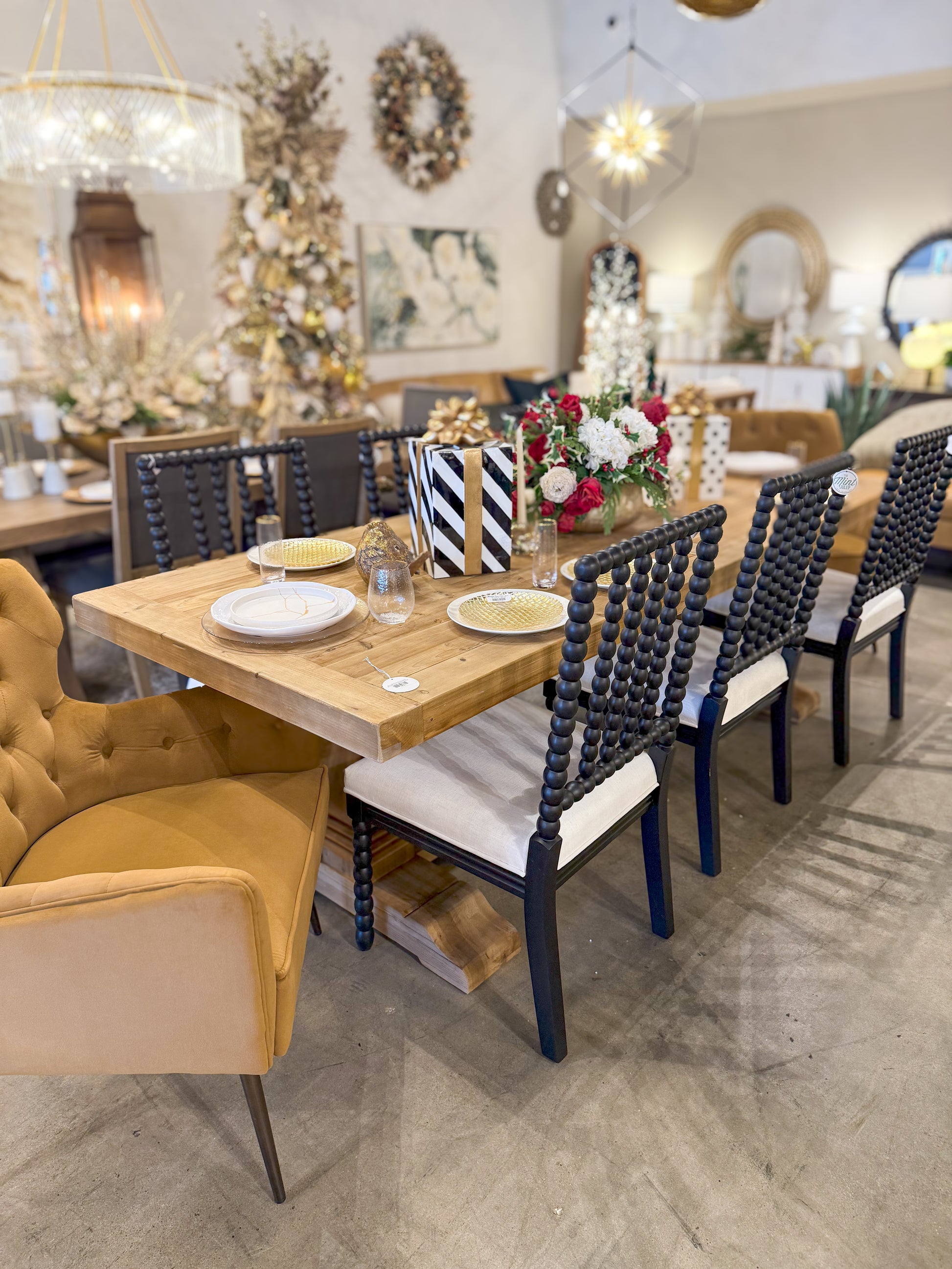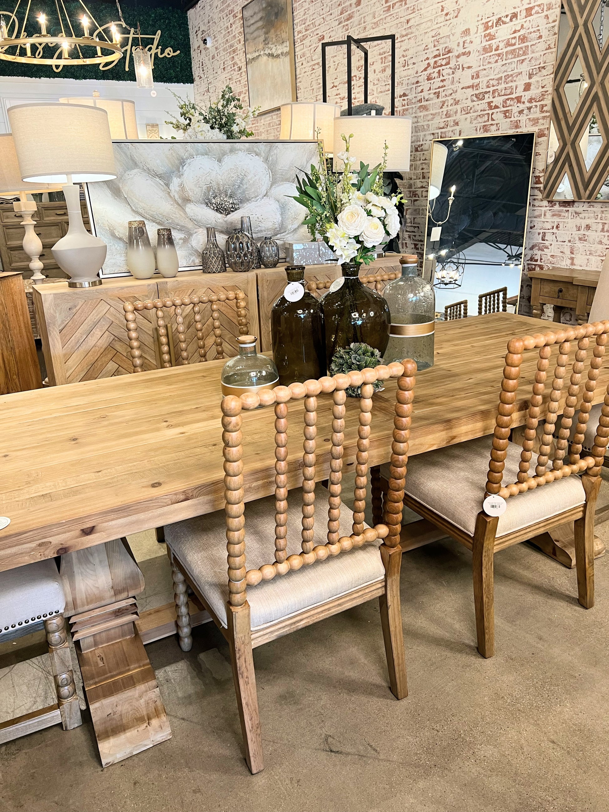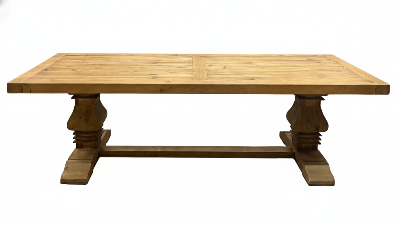 The Elliot 8' Elm Dining Table is expertly crafted from durable solid elm hardwood and features a classic trestle base and natural wood finish, making it a versatile addition to any transitional room. With its sturdy design, this table can comfortably seat 8-10 people and is sure to last for generations. Customize the look by pairing it with your choice of chairs.