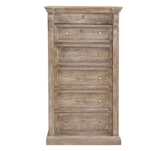 Our Adelaide 6 Drawer Dresser is crafted with solid mango wood and a chic natural finish for a timeless look! Gold hardware adds a touch of luxury, while the tall silhouette provides ample storage for your everyday needs.