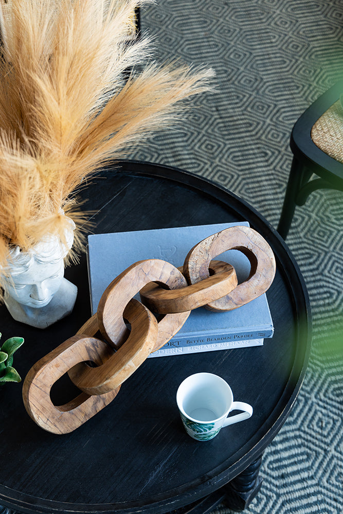 Enhance your home's decor with this versatile Teak Chain piece. Crafted from 100% teak root, these statues can be placed anywhere in your home, from the living room to a nearby hallway. Add a touch of creativity to your design scheme with this unique and elegant decoration.