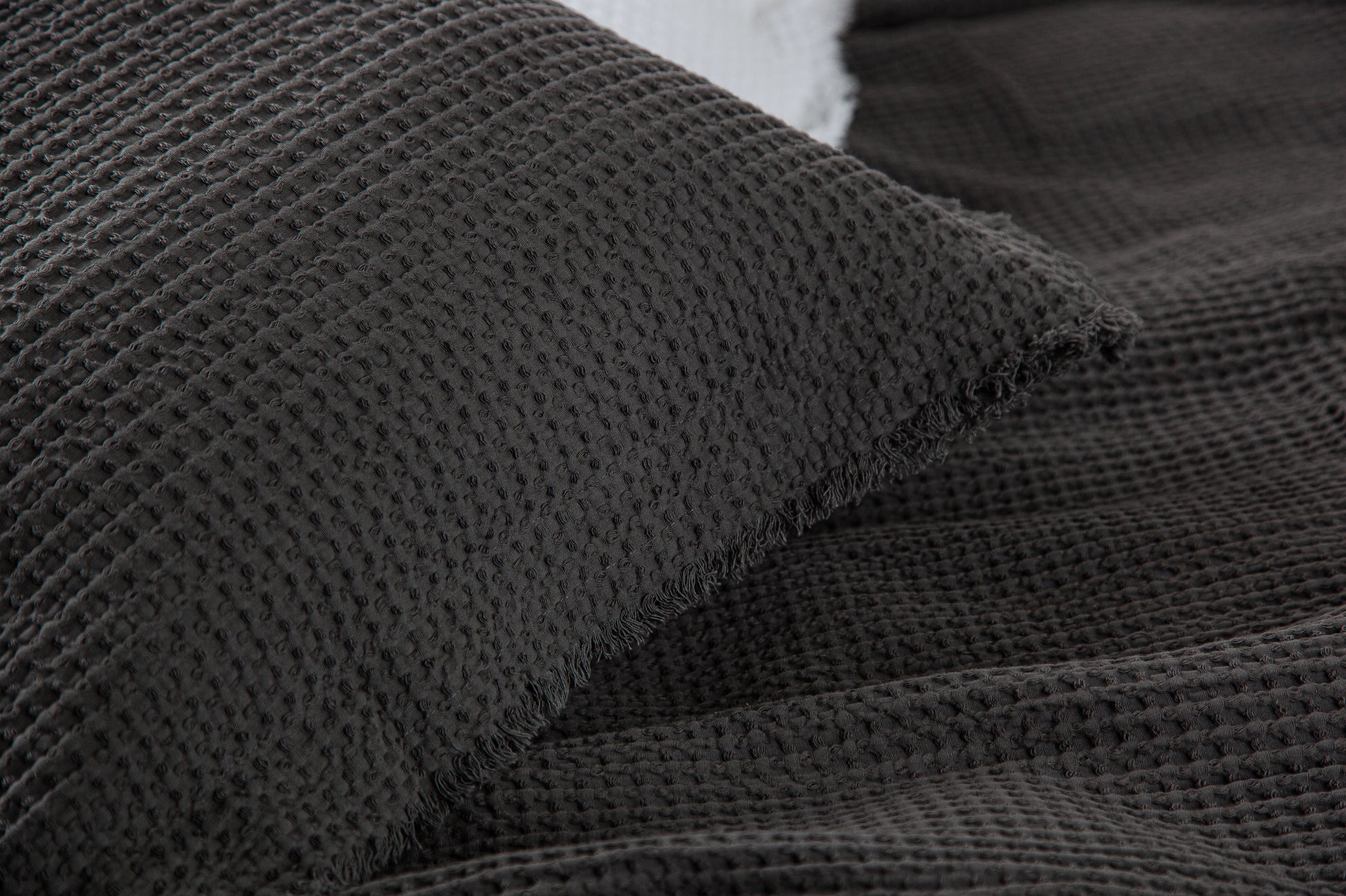The Tipton Matelasse provides incredibly soft texture with it’s waffle weave and frayed edges. This coverlet has a lofty waffle weave of fine cotton and a double raw edge flange.